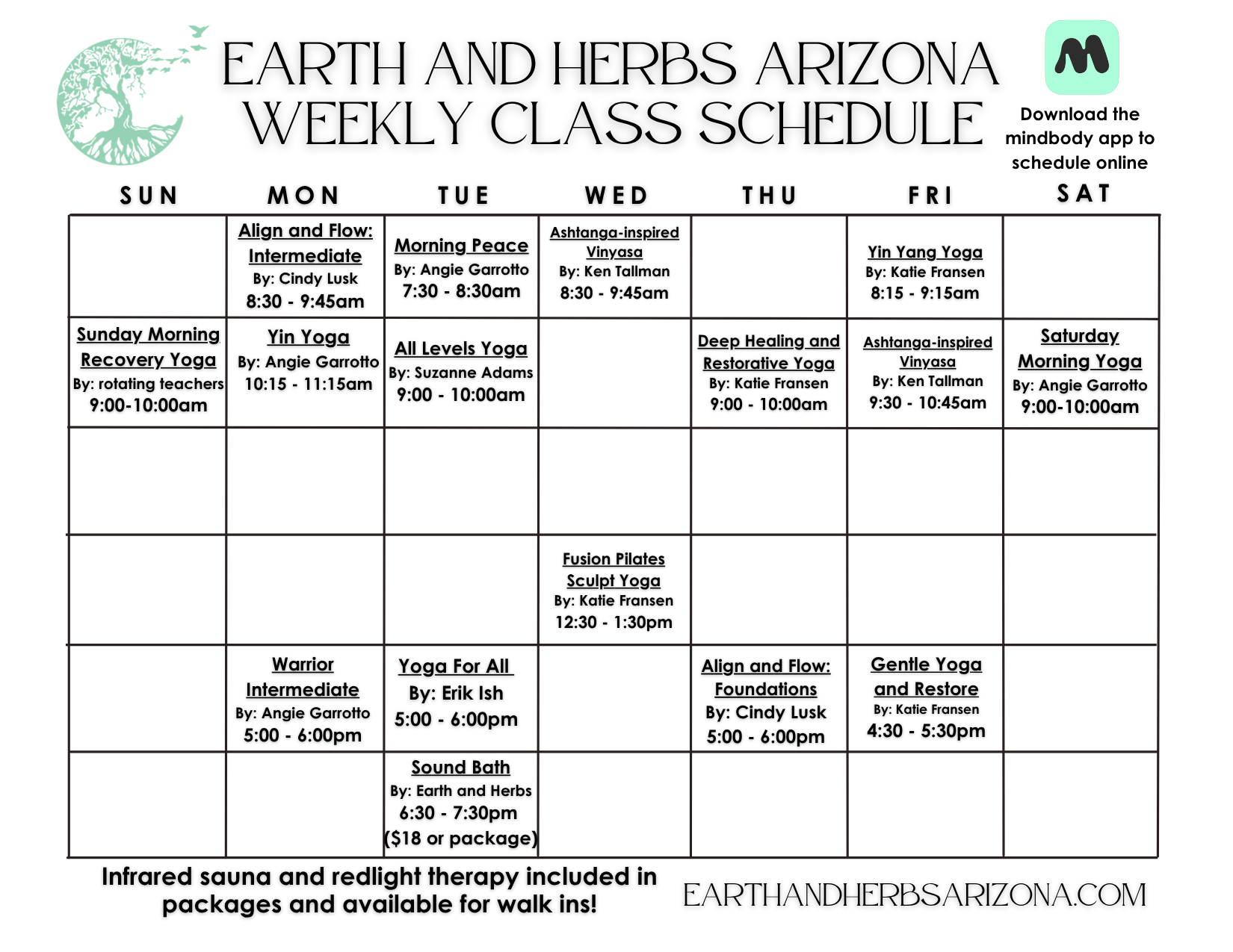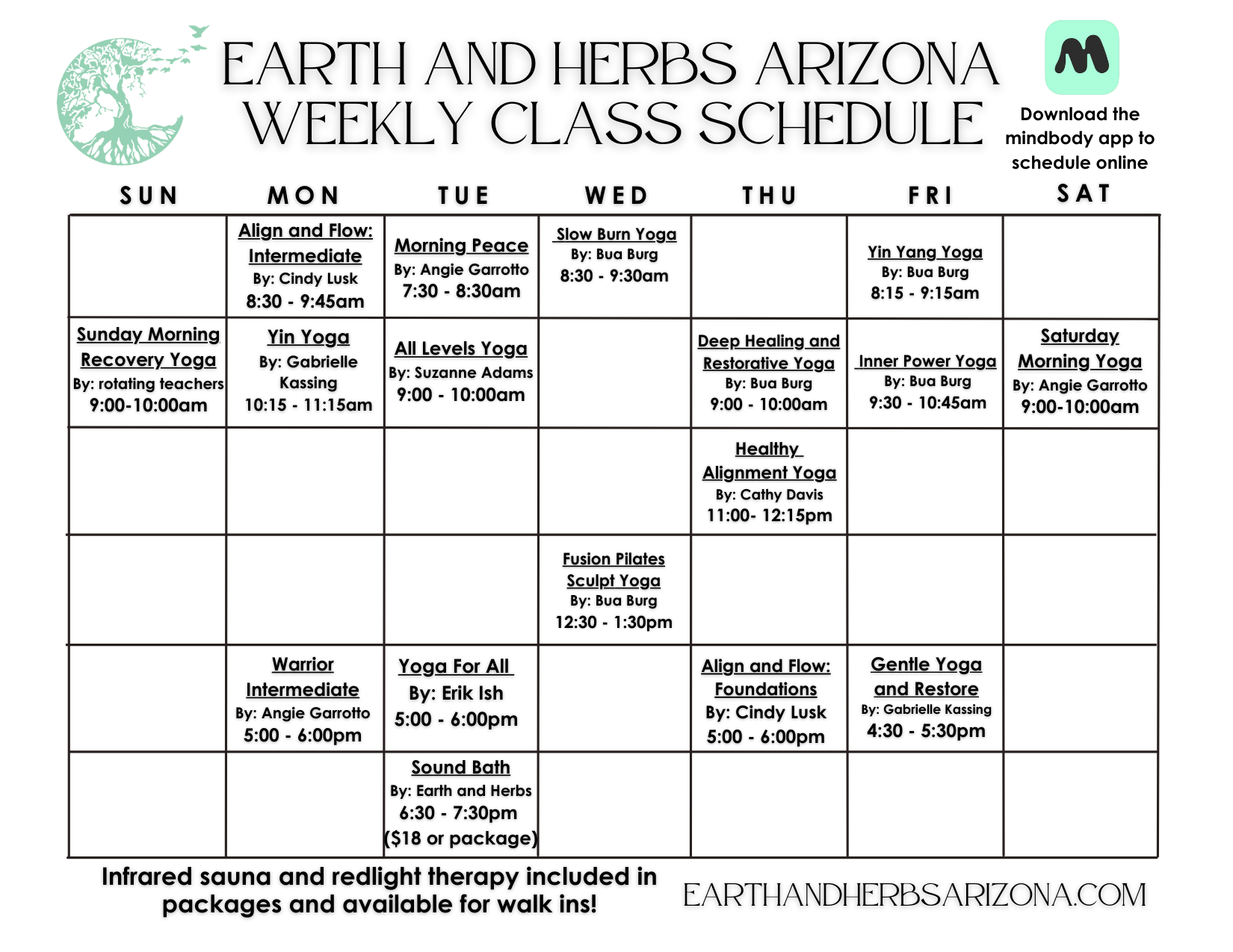 Here’s the upcoming classes! Click “full schedule” to pick a particular day or scroll down to see all of our class and package offerings.